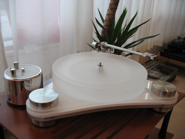 I started off my visit by getting familiar with a new Scheu Diamond vinyl player (an acryl body model costs 2.250 €). It was really a beautiful, as some of the owners are (Katie Melua…), and technically sophisticated player. It included for example a separate 12 VDC motor with fine adjustments and 50 mm thick acryl plate (80 mm is optional!). A little 12VDC/550 mA transformer is also included, but Musiikin.com recommends using KingRex SLAP power unit (445 €) with the player. During the demo the Scheu Diamond had Roksan NIMA unipivot tone arm (650 €) and it worked very well with Linn Klyde MC cartridge (1.095 €).