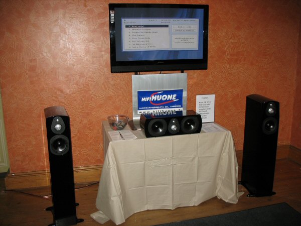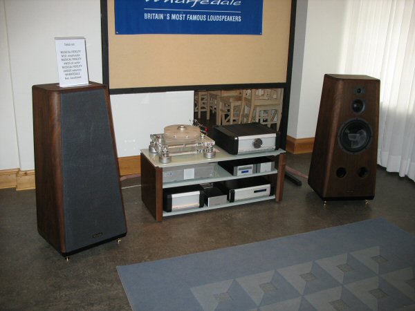 Audelec presented a system which had a Musical Fidelity front end (M10 analog player, kW25 CD-player and kW550 amplifier) with Wharfedale Neo speakers which had very nice fit and finish. The sound was a bit too soft for my taste but there was plenty of bass energy available. I think the balance of this system suffered most from the incompatible room acoustics.