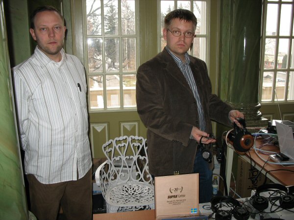 Jari Råback and a colleague showed Grado headphones and Supra cables. In many cases good headphones are a very reasonable budget class solution for the audio enthusiast. We had a little discussion about the cables too. We all agreed that it is really worth trying to listening to different kind of cables as well.