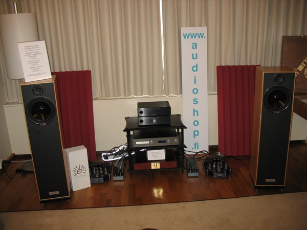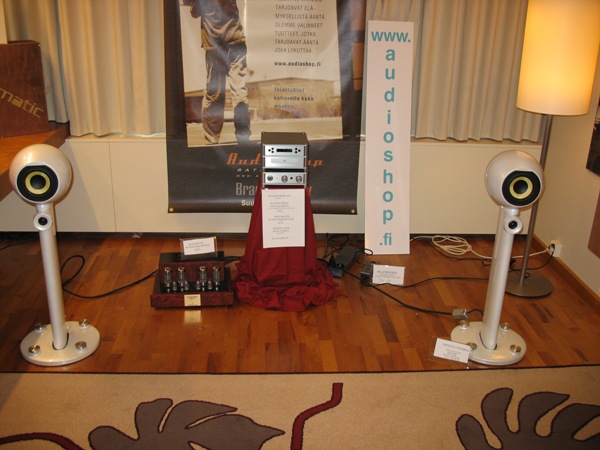 Concept Hifi had quite impressive setup in Åland room. It consisted of Blacknote CDP 300 CD player, Audio Analogue Bellini preamp, Audio Analogue Maestro Duocento amp and Vienna Acoustic The Musik Speakers. This room had at least great frequency response extensions and respectable bass punch.
